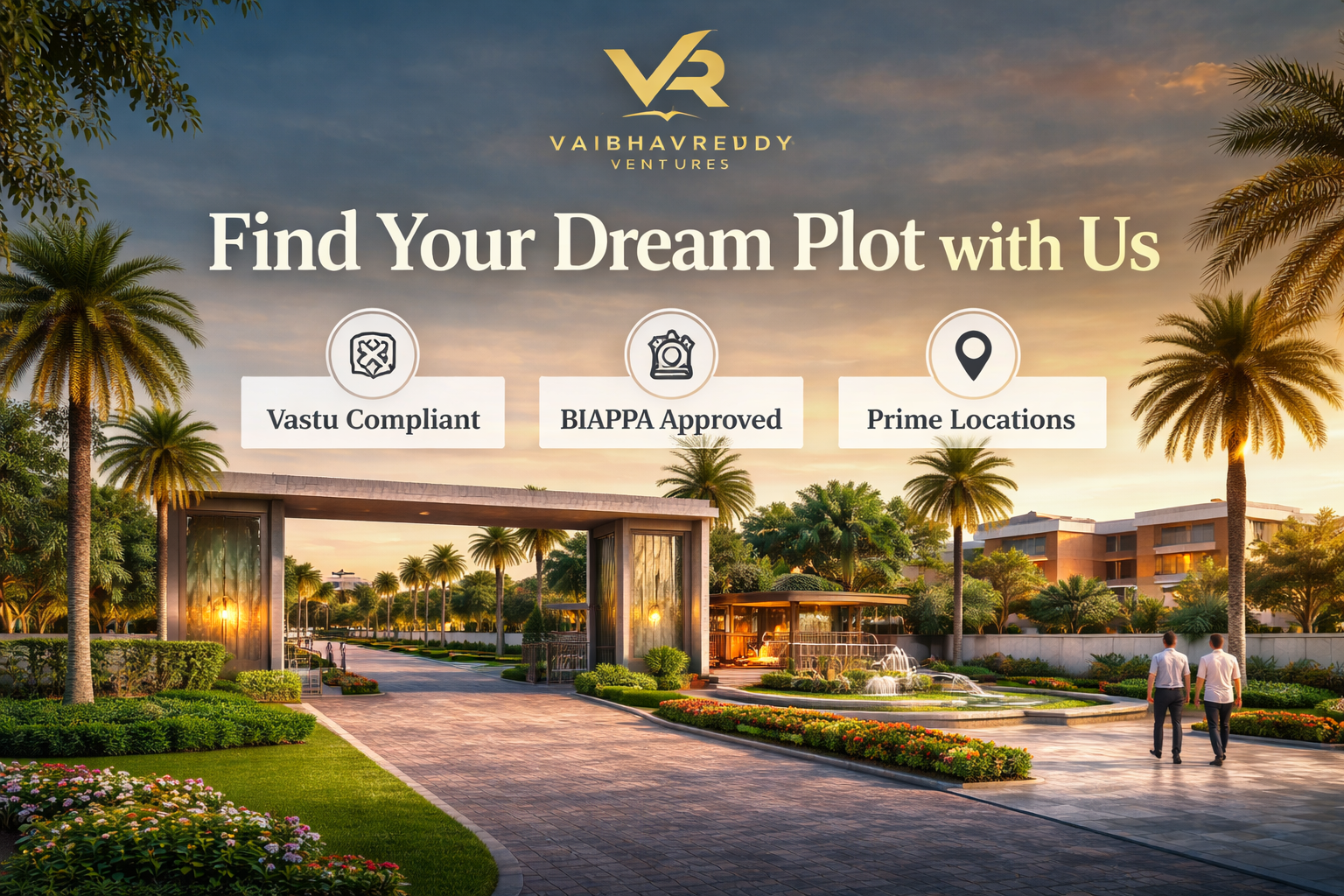 At Vaibhav Reddy Ventures, we combine experience, trust, and quality to deliver premium yet affordable plots in prime locations. Our focus is on creating a smooth, transparent, and rewarding real estate experience for every client. We offer premium, vastu-compliant plots in prime locations with excellent connectivity and strong future growth potential. From documentation to registration, our team provides complete support, making the buying process smooth and hassle-free for every customer.We offer premium, vastu-compliant plots in prime locations with excellent connectivity and strong future growth potential.